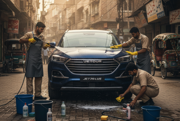 Exterior Cleaning & Polishing: Foam wash, paint correction, waxing, or ceramic coating to protect against Pakistan’s dust and UV rays.
